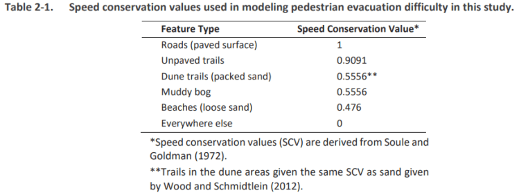 Traveling by bike or ATV will work for some, but most who head east will do so on foot. The chart listed here on the left shows the average time it would take for an average, healthy adult to make the journey by foot (with paths in good condition). These times are taken from Google Maps.