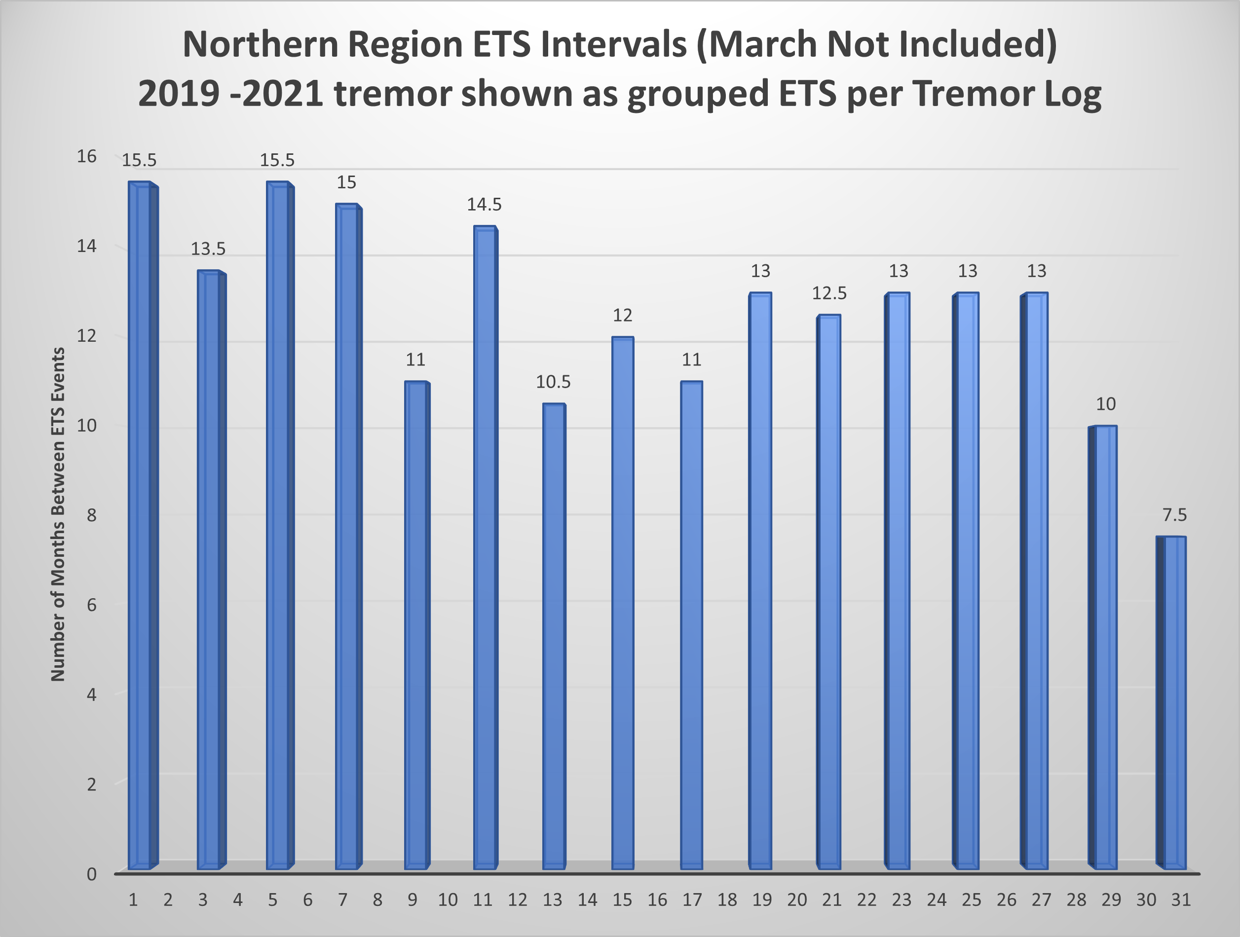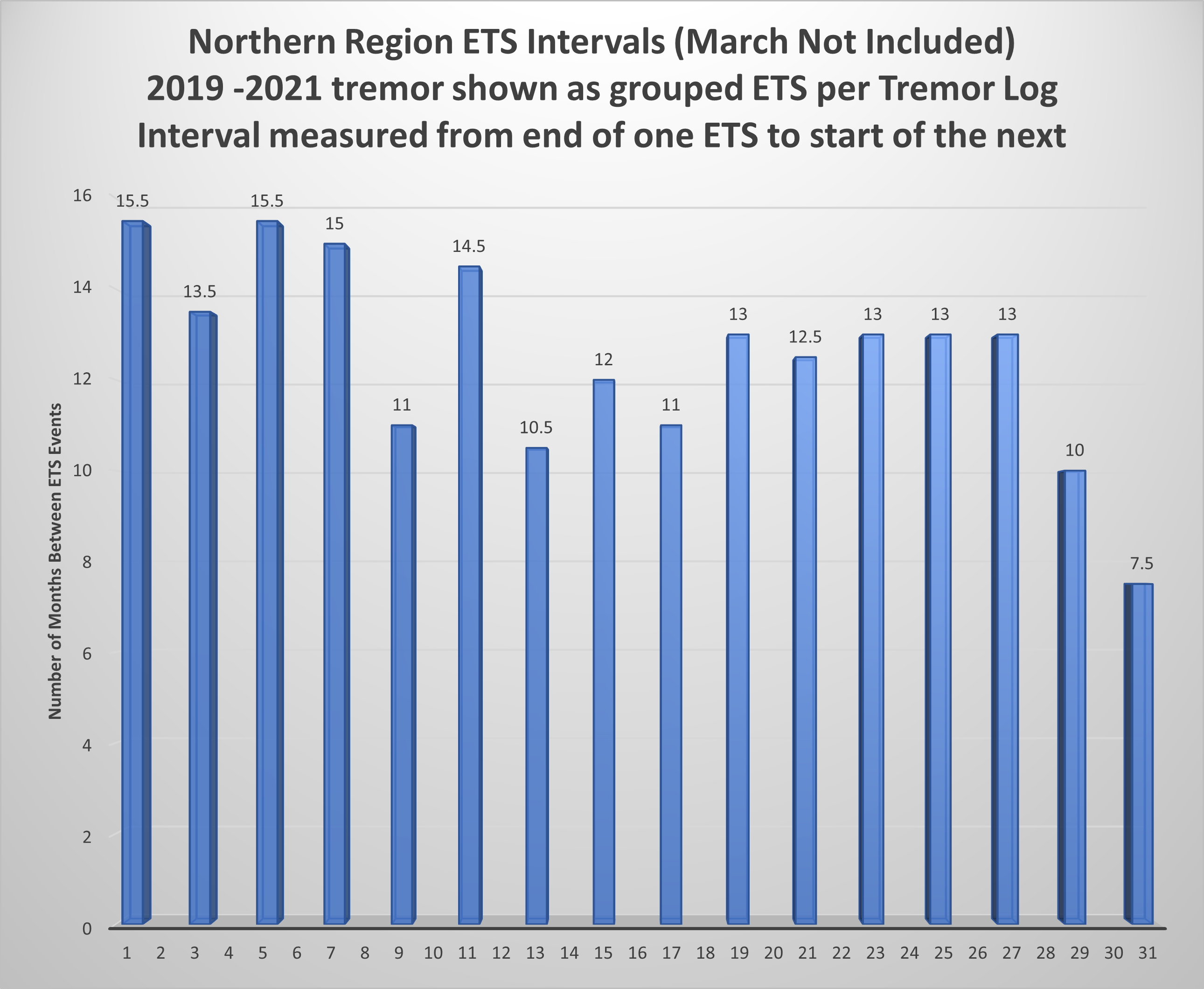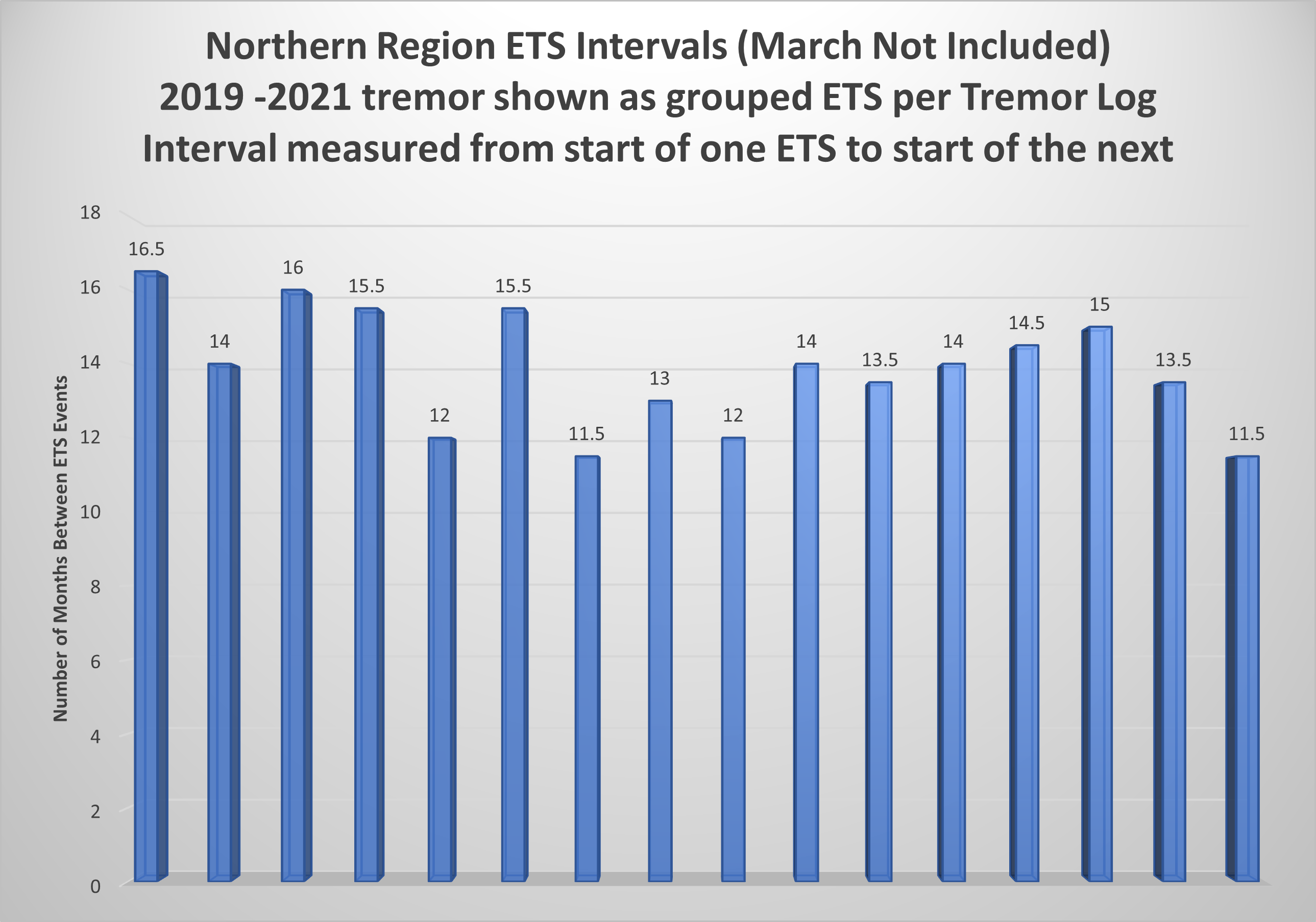 Lesson 1 Conclusion: I had assumed, based on the tremor activity and the log/blog, that March was a northern event. GPS data doesn’t agree, so March has been removed from my interval list.