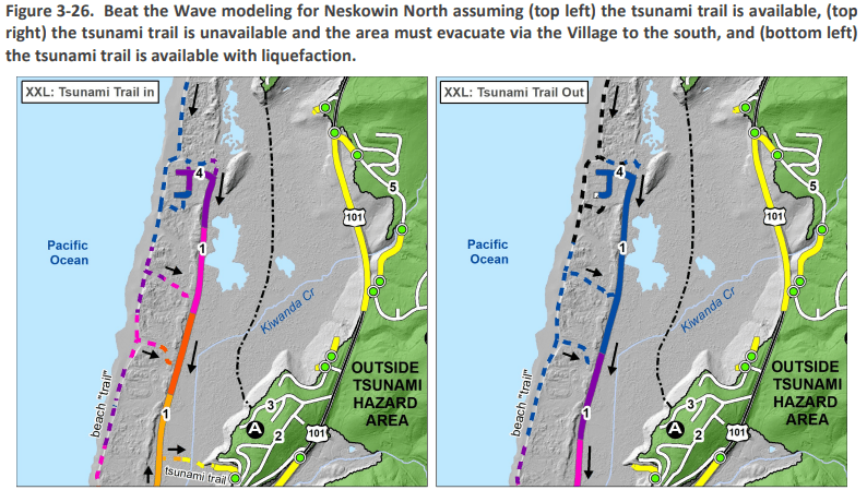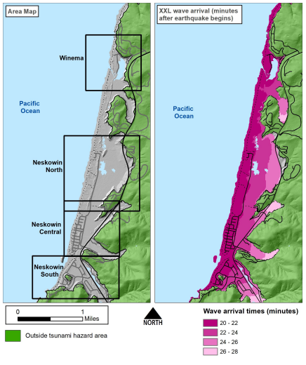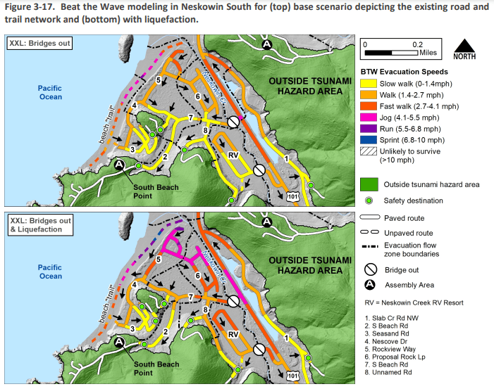 The Salem Avenue bridge is expected to fail and liquefaction is highly likely in the village. Tsunami Beat The Wave maps (which tell you how fast you will need to move based on your location) for Neskowin are shown in three sections, north, central, and south. Also shown on this page are O-Help liquefaction. landslide and shaking expectations.