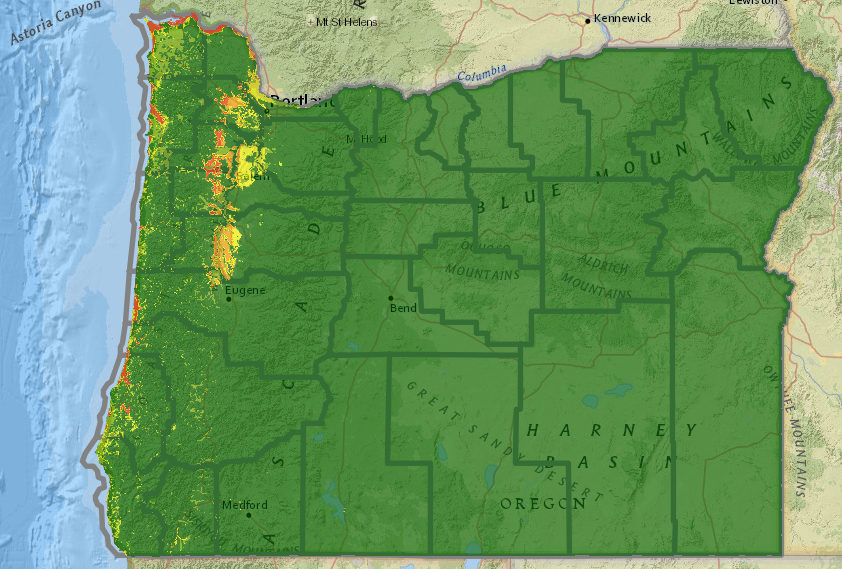 The Oregon Department of Geology and Mineral Industries (DOGAMI) hosts the Statewide Landslide Information Database for Oregon (SLIDO). The map offers similar functionality for viewing location-specific hazards. Be patient with the map. It’s a lot of data to display and can take a minute to load.